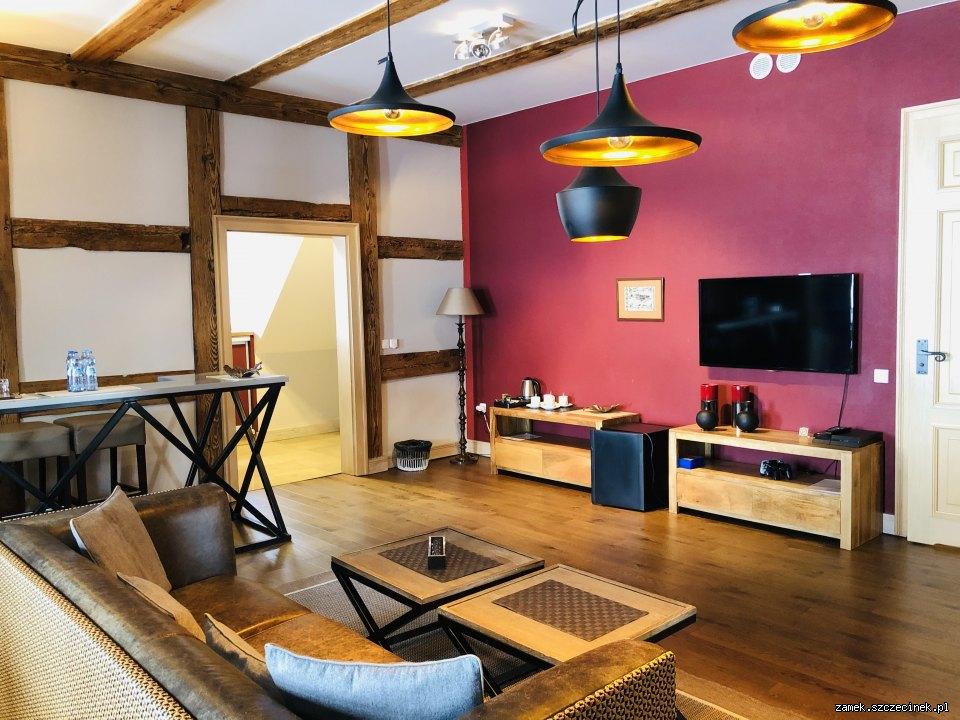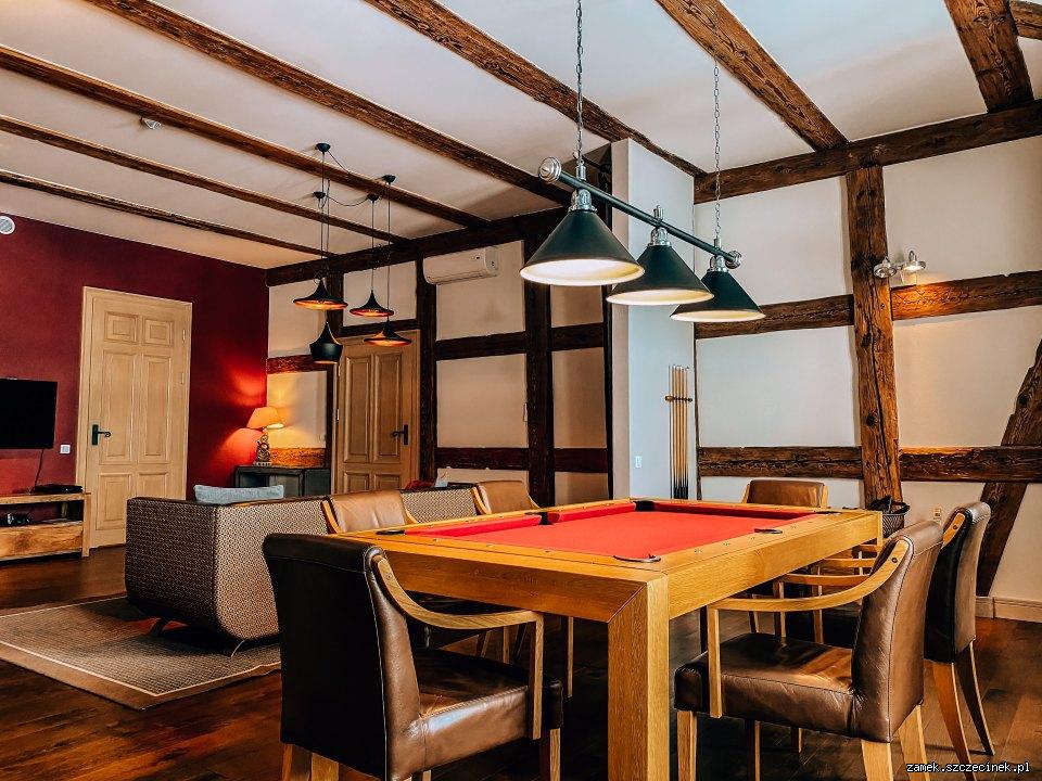 APARTAMENT RYCERSKI to idealne pomieszczenia dla ceniących piękne widoki i dyskretny luksus. Zachwyca zarówno dobór mebli jak i gustownych dodatków. Apartament składa się z dwóch dwuosobowych sypialni (łoża małżeńskie) połączonych obszernym salonem, w którym można toczyć poważne rozmowy biznesowe, jak również zrelaksować się grając w bilard przy szklaneczce whisky. Dla naszych Gości zarówno dorosłych, jak i dzieci czeka w Apartamencie Rycerskim PlayStation4 wraz z wyborem gier.