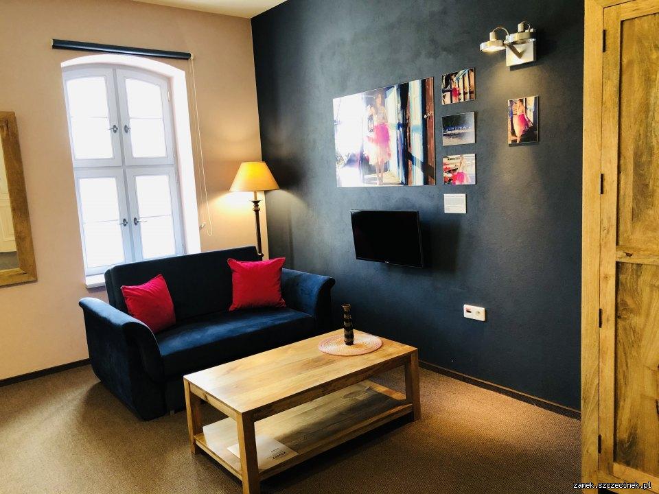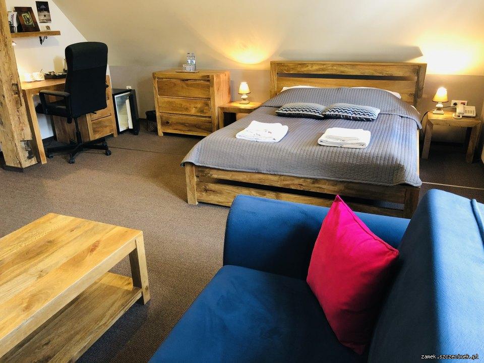 POKÓJ WSCHODNI– zwany również pokojem Grzymisławy, a to z powodu zdjęć zdobiących ściany, to również pokój dwuosobowy, wyposażony w wygodne podwójne łóżko i jasną, komfortową łazienkę z kabiną prysznicową. Dodatkowo umieszczona kanapa może posłużyć jako dostawka.
